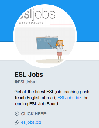 With over 2,000 followers and a consistent tweet schedule, @ESLJobs1 goes for a straight-to-the-point attitude with their tweets. No fluffy pics or GIFs, just one-sentence job posts for the no bs ESL teacher.